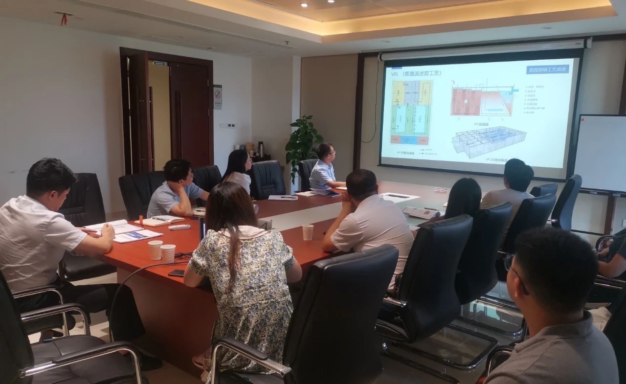 现场考察后,双方技术人员通过座谈会议的形式进行了深入交流。湘交市政对水环境业务布局和发展规划做了介绍;惟创环境公司详细阐述了VFL(Vertical Flow Labyrinth)工艺,该工艺具有污泥浓度高、耐负荷冲击能力强、占地面积小、出水水质稳定等优点,对乡镇规模污水厂具有较高的匹配度。双方技术人员就目前乡镇污水处理领域的痛点、难点问题进行了探讨交流。本次技术交流会历时两个半小时,与会人员收获颇丰。