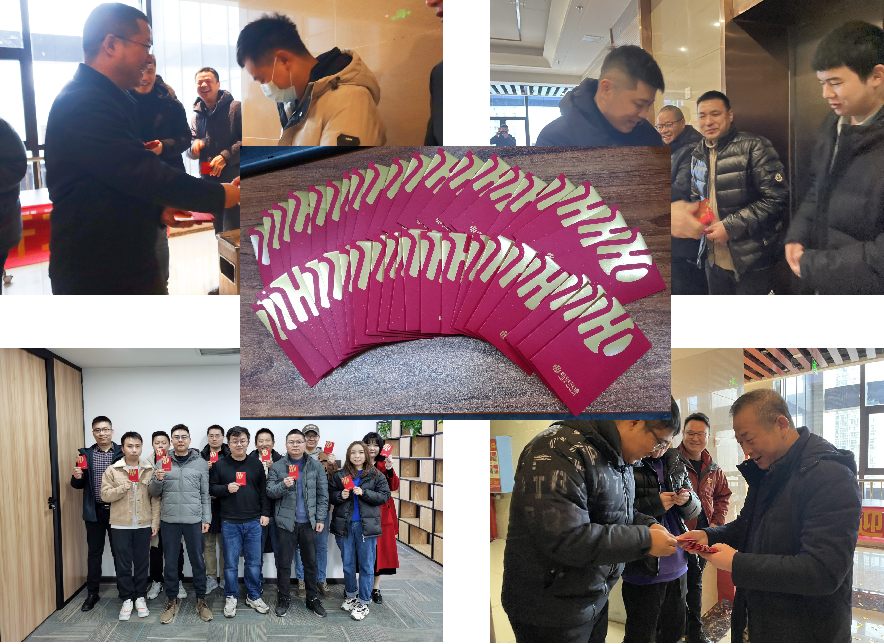 彩带飞舞,欢声笑语中,领导们将红红火火的“开工红包”派发到同事们手中!各区域员工也在综合同事的组织下,收到了开工红包!一起开工大吉!