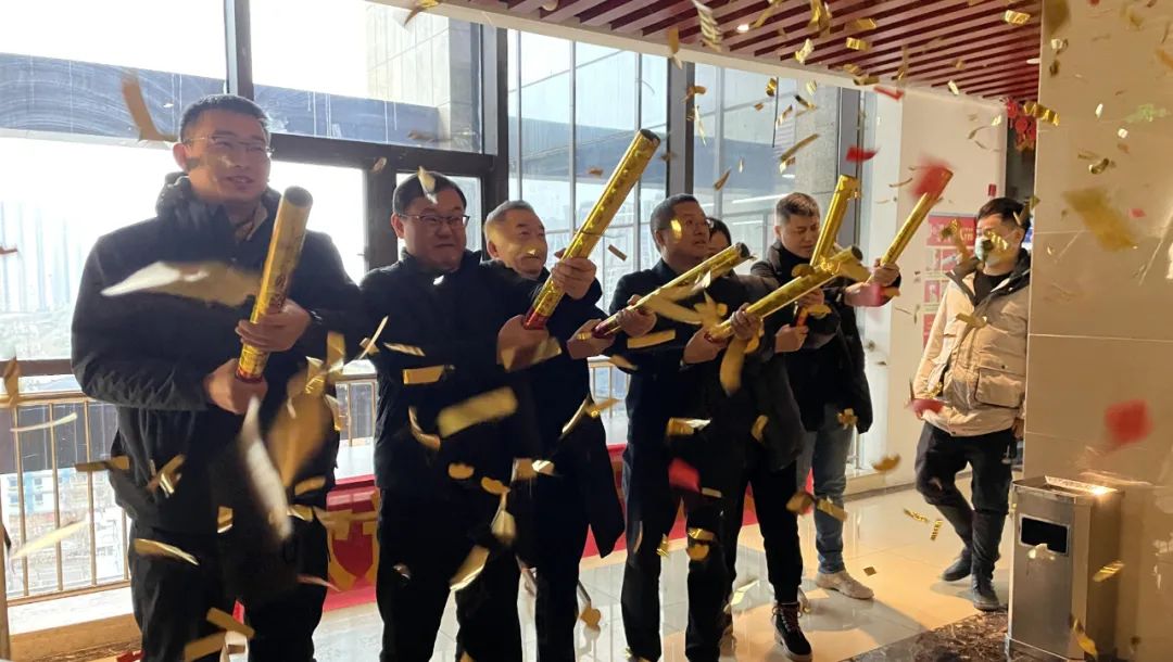 9:38,全体总部员工集合举行开工仪式!由总裁办全体领导拉响新年礼炮,奏响2022新乐章!