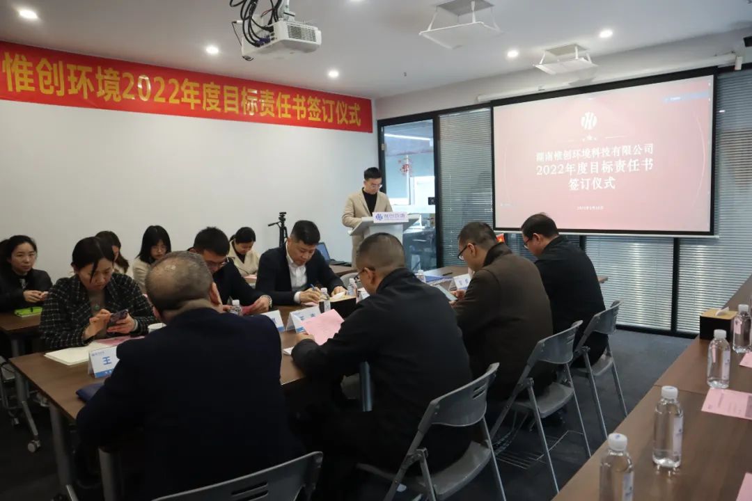 为不断强化管理团队及广大员工的市场竞争意识、责任意识和协作意识,确保公司年度工作的顺利开展,惟创环境于2月28日在长沙总部隆重召开了2022年度目标责任书签订仪式!董事长王志,联合创始人&首席产品官何国钢,总裁赵达,以及全体中高层管理人员悉数出席会议。