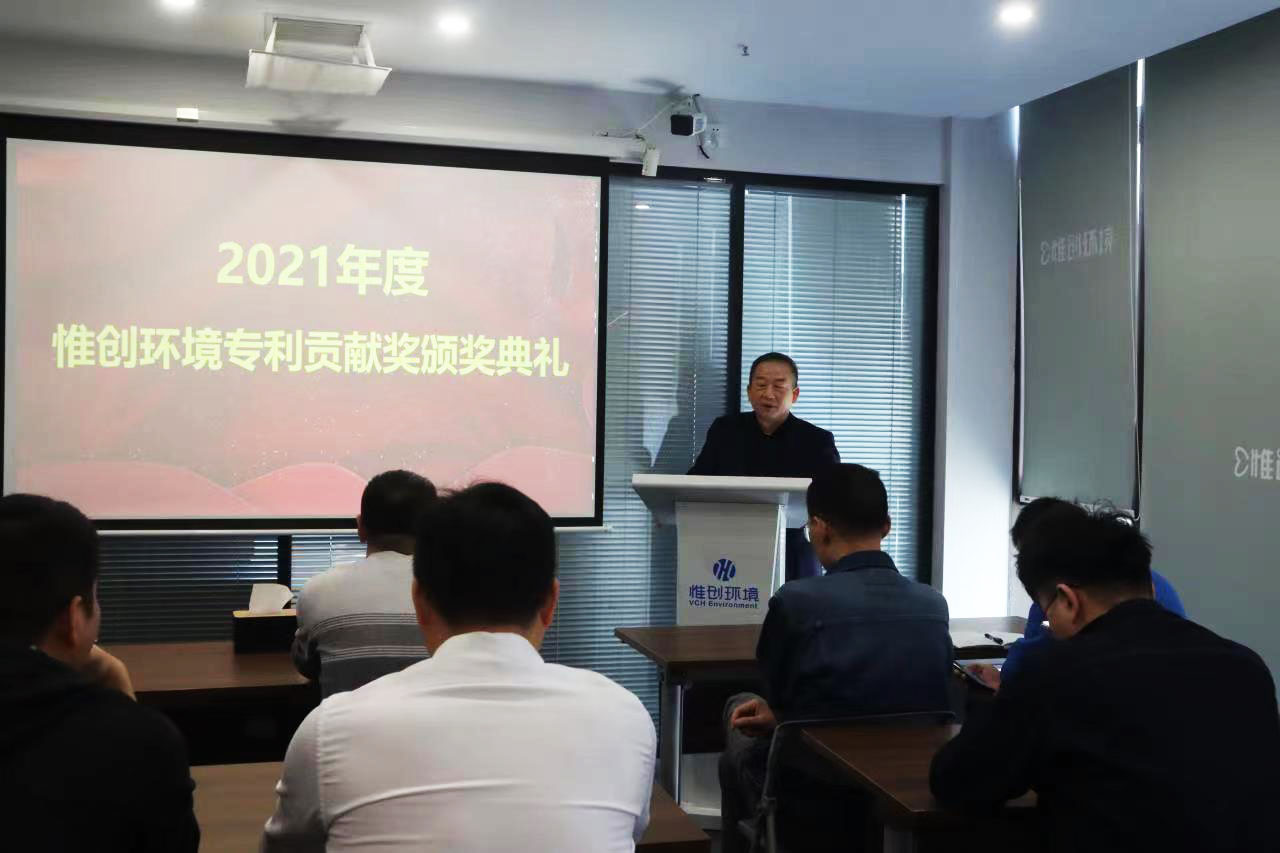 为强化全司自主创新意识,表彰在上年度专利工作贡献突出人员,2022年4月20日,惟创环境在长沙总部举行2021年度专利贡献奖颁奖典礼。我司联合创始人&首席产品官何国钢先生,总裁赵达先生、副总裁王勃先生、研发总监王化先生出席会议。