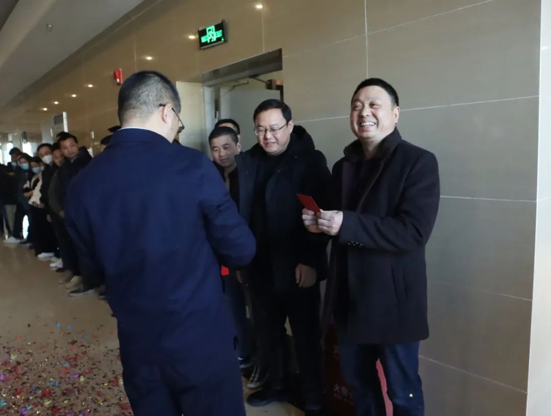 仪式第二项,迎来万众期待的红包环节,今年我们的开门红包由董事长亲自派送,领取红包的同时,全体员工献上一句美好祝愿,收获好运的同时,我们也期盼更多美好!