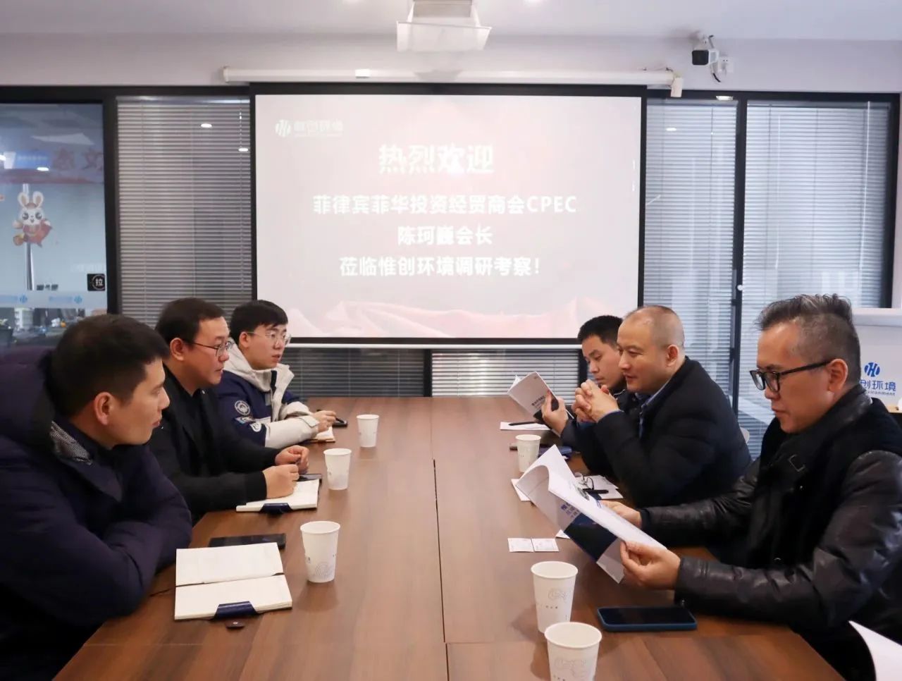 2023年2月14日,菲律宾菲华投资经贸商会(CPEC)(以下简称“商会”)陈珂巍会长一行赴惟创环境开展调研考察,我司副总裁左青携研发部、市场管理部代表与到访团队开展交流座谈,就未来的合作与发展进行深入探讨。
