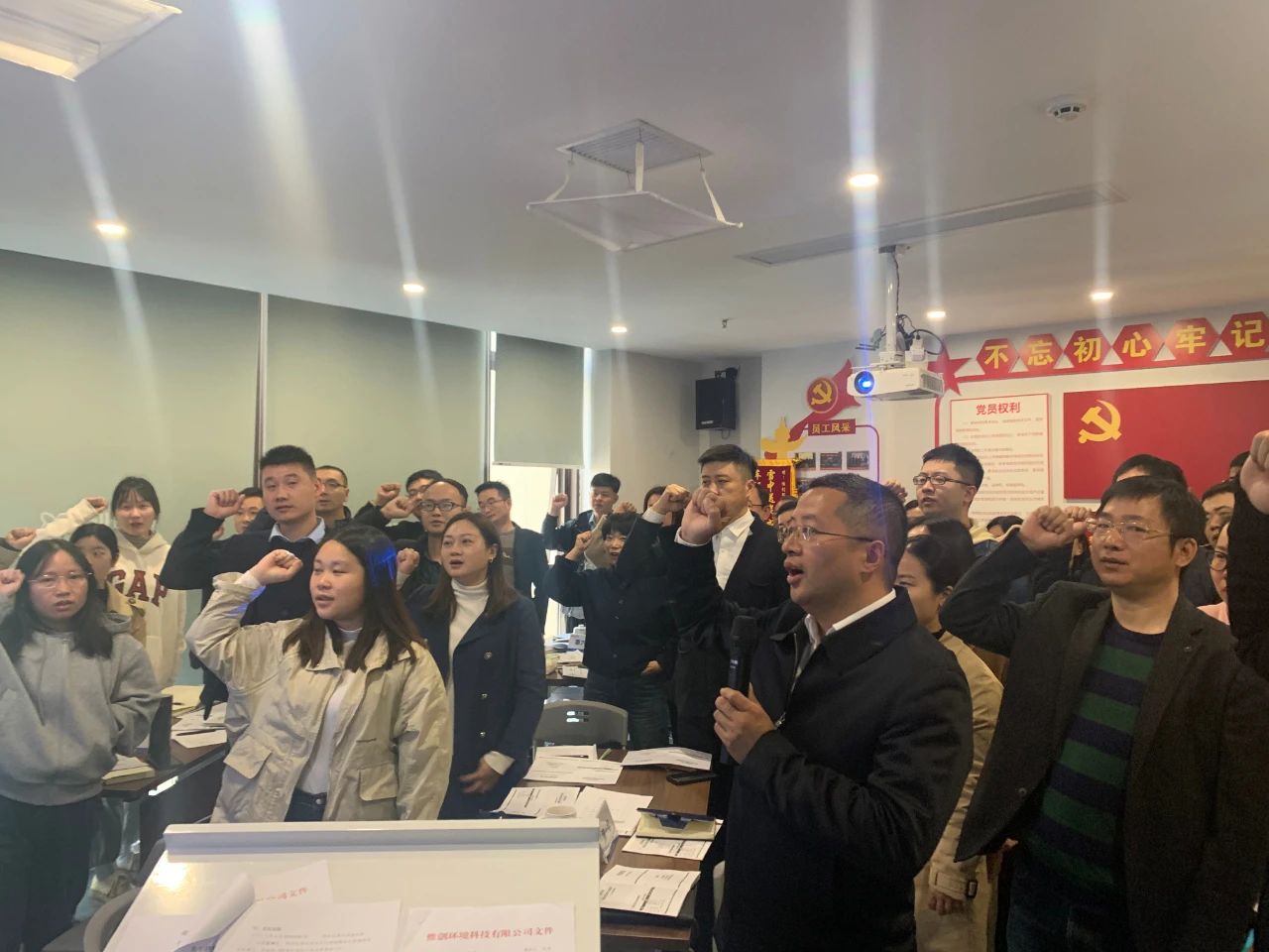 会议第三项,董事长王志先生带领全体员工郑重宣誓。全体员工以赤诚之心为积极推进阿米巴经营模式做出承诺,团结协作、稳步推进、确保效果!