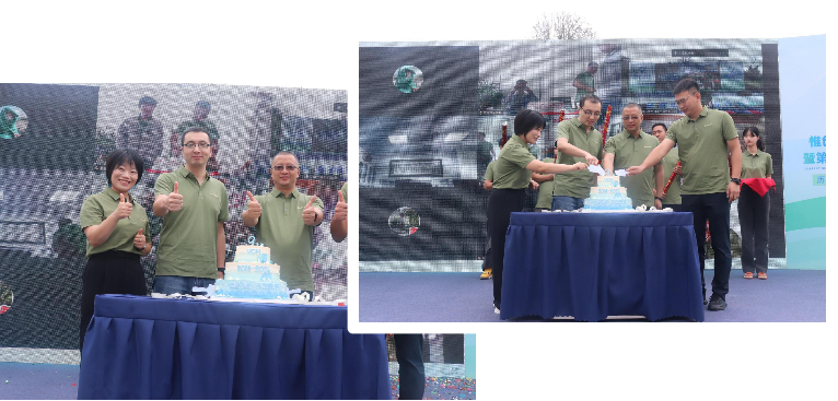 随后,全体领导一同上台与线上各区域的惟创家人们共同切开象征着九周年希望与期望的蛋糕,将美好的祝福传递给每一位同事。霎时,生日快乐歌与欢庆的礼炮声同时响起,快乐与祝福的声浪悠扬,留下了我们共同的美好回忆。