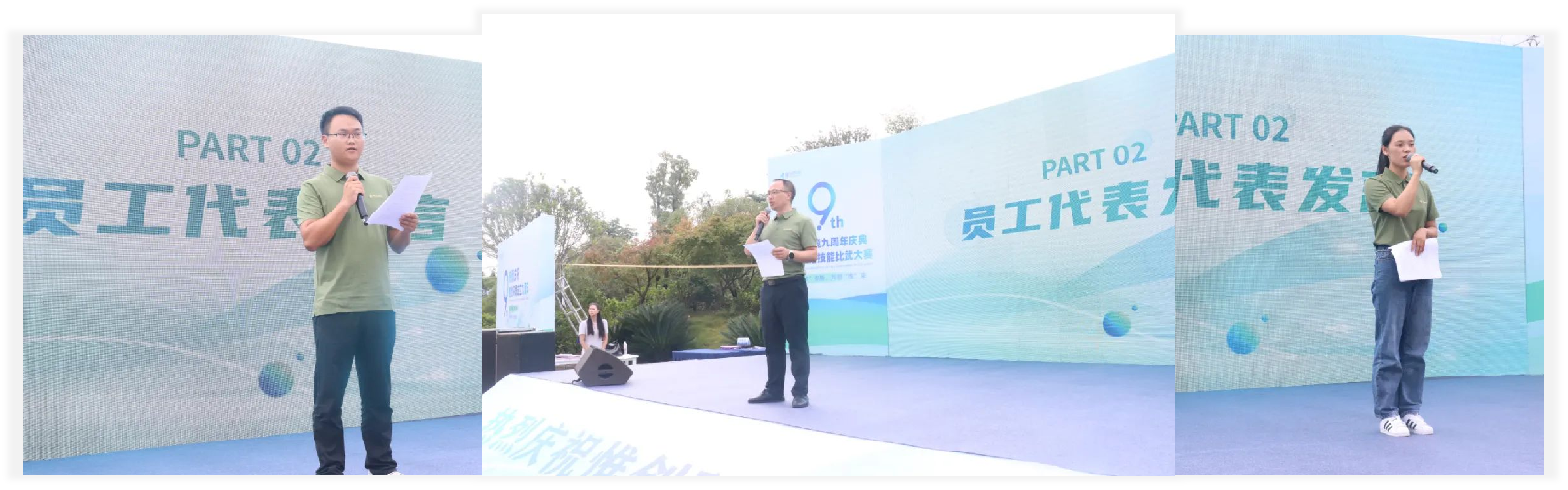 一直以来,惟创环境注重人才培养,致力于让员工更值钱,公司更有价值,为社会做贡献。庆典上,我们邀请到三位员工代表发言,员工代表们从自身实际经历与感受出发,分别为我们讲述了他们“稳”中求进、以“变”为翼、“新新”向荣的成长故事,也分享了内心深处想对公司说的话。