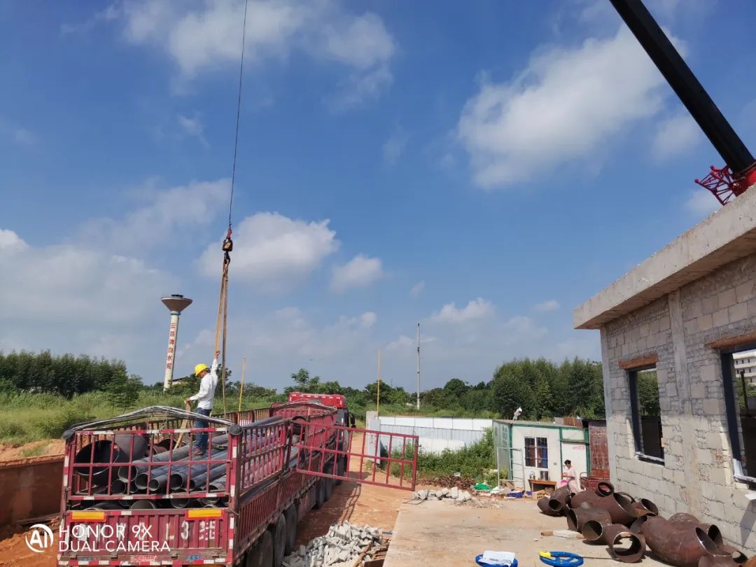 《管道卸货》:广西横县第二污水处理工程管道卸货。搞好污水治理,造福子孙后代,为最美茉莉花园尽绵薄之力。