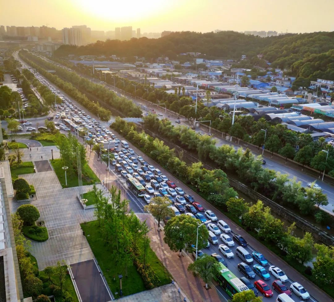 某日从公司下班回家后,打算在窗台边上眺望远方,看见道路上正在堵车,居高临下,发现车流乱中有序,加之夕阳的映照,给这个繁忙的城市添上一道风景,不禁拿起相机拍下了它。