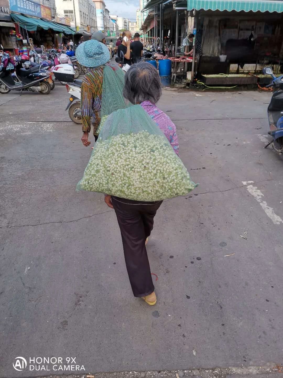 《憧憬》:这是采摘一天下来的茉莉花。绿水青山就是金山银山,保护环境从我做起,那么满山遍野的茉莉花也不会再是梦里的景象吧。