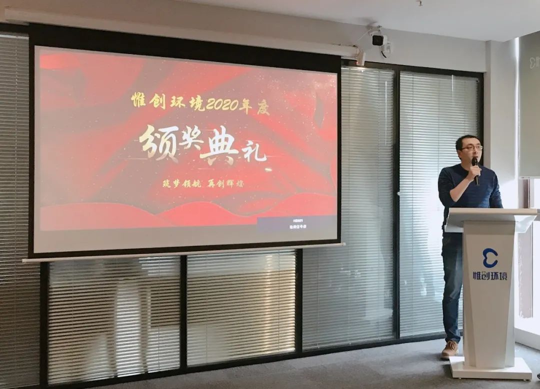 颁奖环节后,董事长作最后讲话,对所有获奖同事表示祝贺,同时也向全体员工提出了新目标、新要求,希望大家能够继续与公司达成友好合作,同心同行,携手并进,再创佳绩! 每一份奖杯和奖金的背后,都传递出浓浓的情谊和深深的爱意,感谢每位获奖者给我们带来的惊喜与感动,感谢全体惟创人为惟创环境排除万难,同舟共济,做出的卓越贡献。 2021年,让我们聚力再前行,一起“牛”转乾坤!