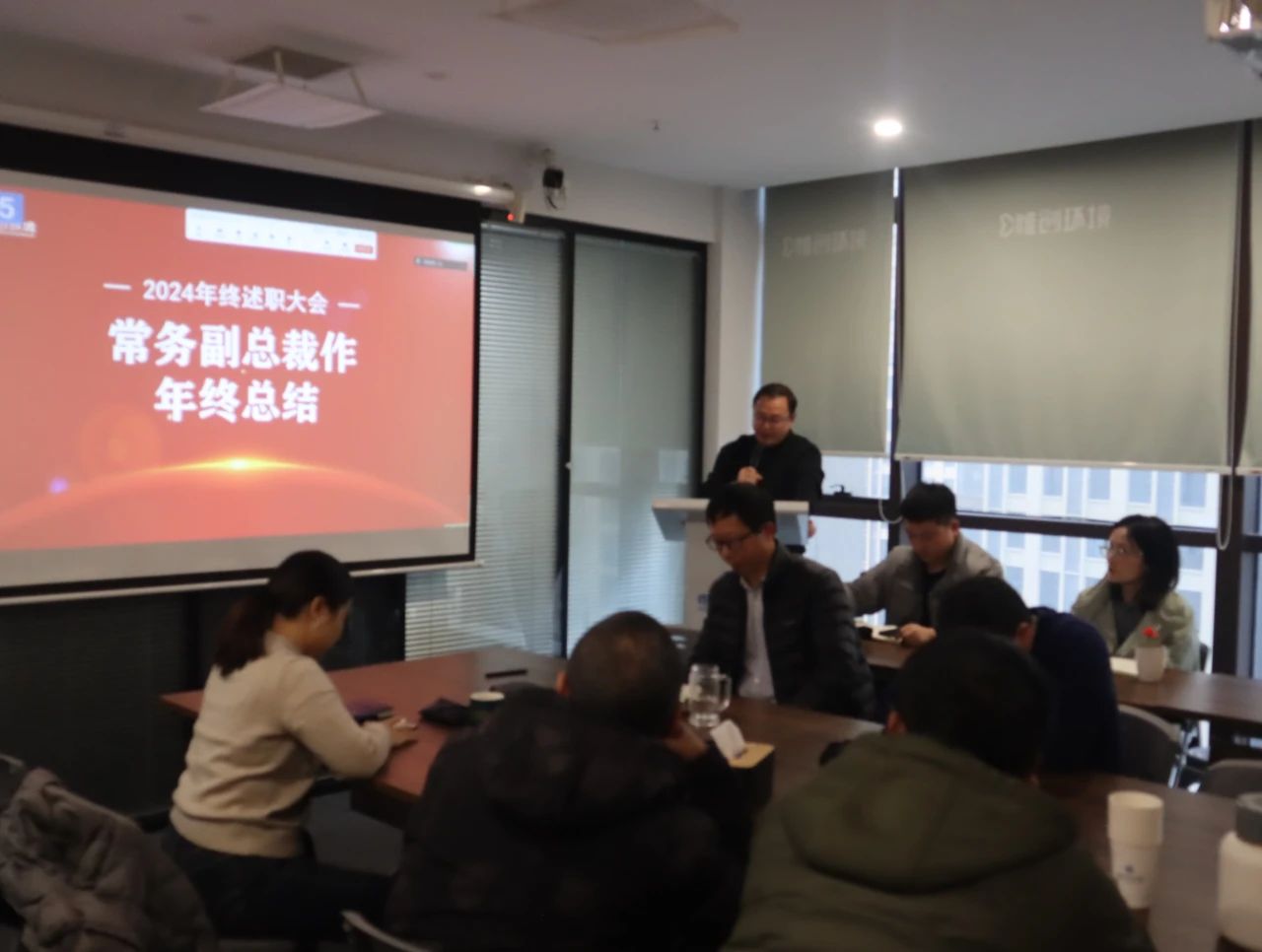 随后,常务副总裁左青先生作年终总结发言,首先,他对于全体员工2024年度在工作上的付出与努力予以高度认可,并致以诚挚感谢,提出2025年度工作依然要围绕“稳、变、新”进行科学规划,即住传统业务,转业务模式,探索创道路。全司上下攻坚克难,向着一致目标前进!