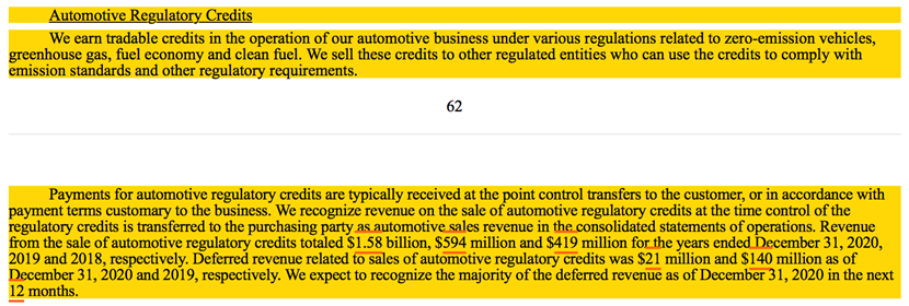 特斯拉已经被提起无数遍,号称“卖碳翁”。眼见为实,我硬是把特斯拉2020年财报翻出来读了一遍,亲自找出来一段描述:2020、2019、2018三个年度,通过出售碳积分分别获得15.8亿美元、5.94亿美元和4.19亿美元的收入。2020年度,特斯拉净盈利7.21亿美元,也就是说,特斯拉扭亏为盈,全靠卖碳。不过,今年一季度,特斯拉净盈利已经达到4.38亿美元,不必靠卖碳了。