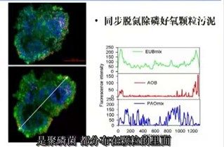 一个颗粒污泥内部为缺氧/厌氧区,主要为反硝化菌和聚磷菌,外部为好氧区,主要为氨氧化菌和生物氧化菌群,就是说,同一位置上的同一颗粒,就可以起到脱氮除磷和降解有机物的作用,也就是说,一个颗粒就是一个同步脱氮除磷和降解有机物的反应器。这是第二个特点。