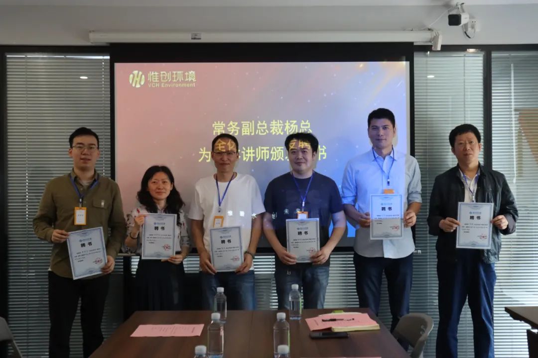 开班仪式现场,我们公布了2021年度聘用讲师名单,并由公司常务副总裁杨总,办公室主任黄主任为全体讲师颁发聘书及讲师证。