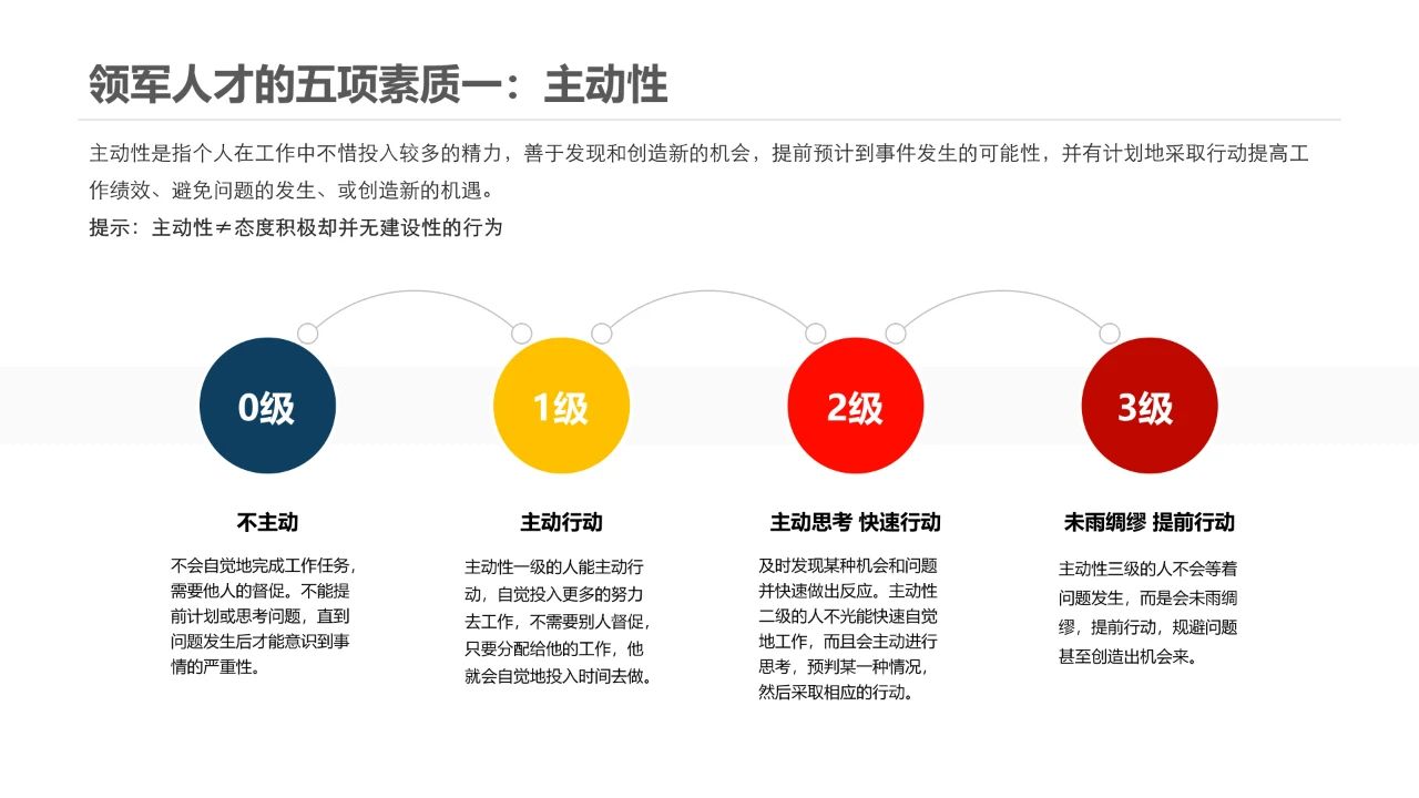 举一个例子,对于项目实施中出现的各种问题。主动性强的同事,会积极向上级领导反馈,并协调资源来解决,而主动性不强的同事,就是喊一步动一步,等待问题被解决。主动性强的人,能力必将不断提升,工作变得越来越得心应手,所以我们在工作中要时刻保持主动性,做一个主动性强的人。